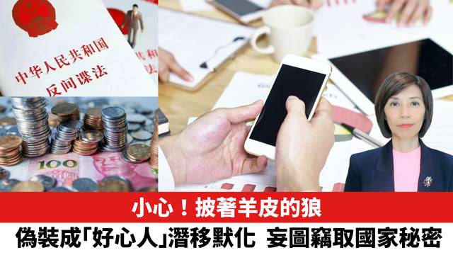 小心披著羊皮的狼!偽裝成「好心人」潛移默化,妄圖竊取國家秘密。 (李彤)