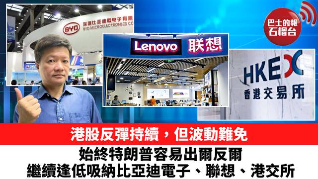 港股反彈持續,但波動難免,始終特朗普容易出爾反爾,繼續逢低吸納比亞迪電子、聯想、港交所。4月14日 (尚風)